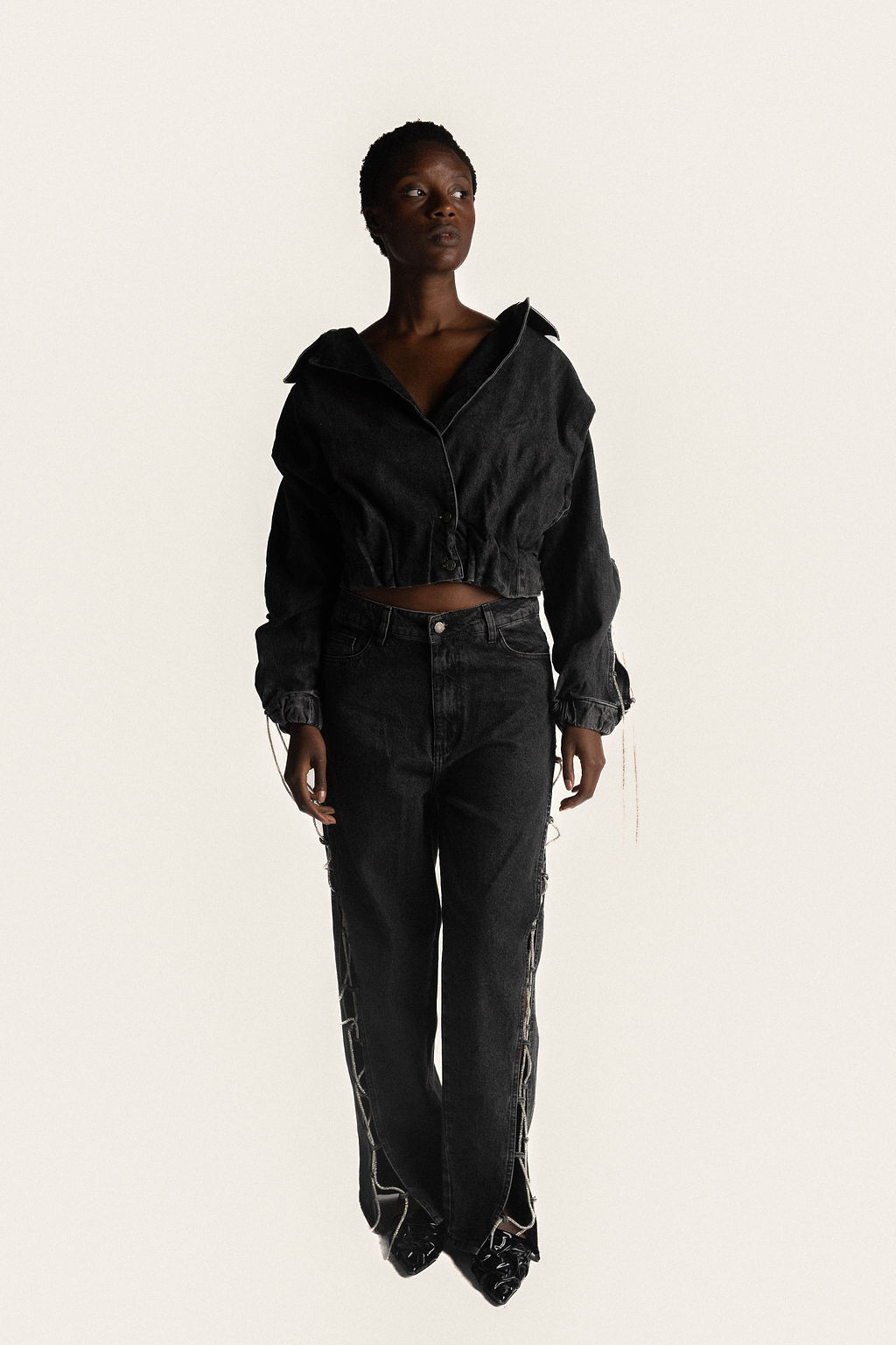 Get ready to spark some looks con nuestra Rule Breaker Jacket. Confeccionada con precisión y atención al detalle, está jacket tiene el equilibrio perfecto entre spiciness y sofisticación thanks to its wow effect que se compone de una abertura en la manga con shiny crystals. Está jacket es una prenda demasiado top y la más protagonista of all times. Un statement piece básico de armario, para que puedas uplift tus daily outfits, así que don’t be afraid to mix & match con tus all time favorites or perfect to pair with our Rule Breaker Pants for a full amazing set.